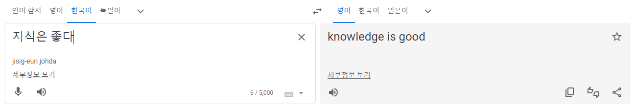 2. Papago : 지식은 좋은 것입니다! 어떻게든 말이되는 문장처럼 만들어낸다.